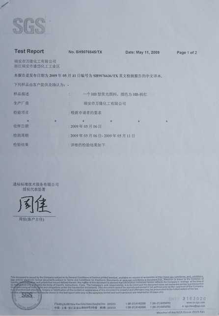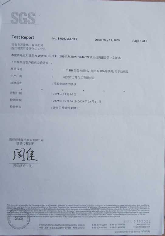 頂凡熒光粉檢測報告: